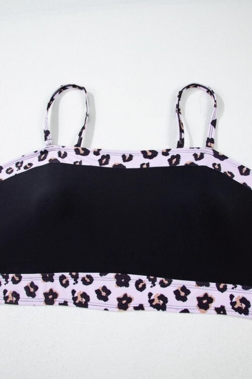 Bikini Sets | Women Black Leopard Print Spaghetti Strap Padded Wireless Bikini Set