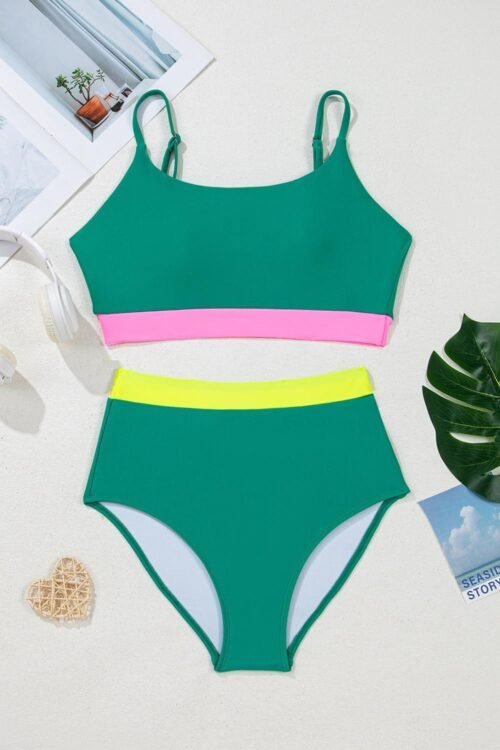 - It Features A Spaghetti Straps Swim Tank And High Waist Bikini Panty.