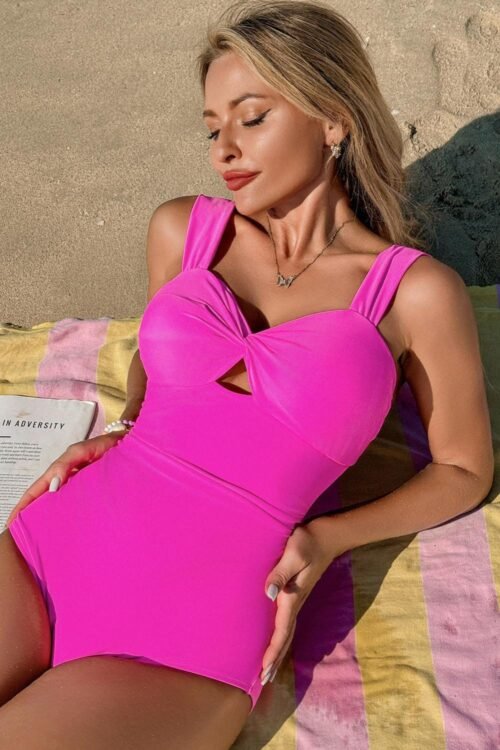 One-Piece | Women Bright Pink Cut Out Twist Bowknot Backless One Piece Swimsuit