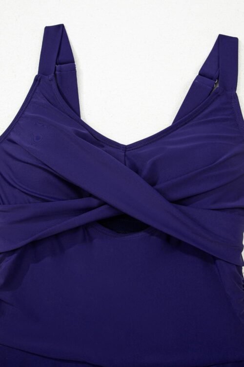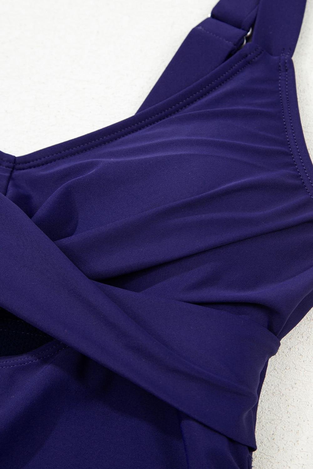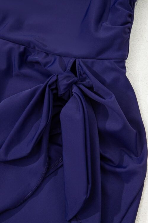 One-Piece | Women Navy Blue Adjustable Straps Cutout Ruched Knot Slit One Piece Swim Dress